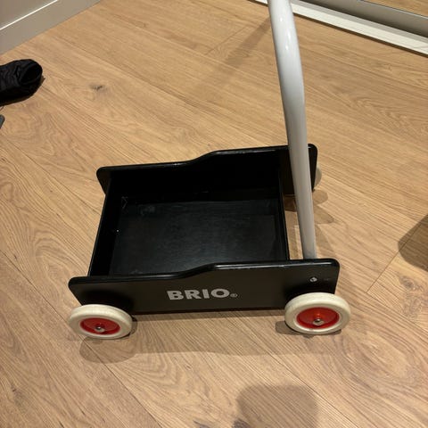 BRIO Lekevogn barn i svart farge. Designet for barn og laget i materialer egnet for lek. Har hjul og håndtak for enkel skyving.
