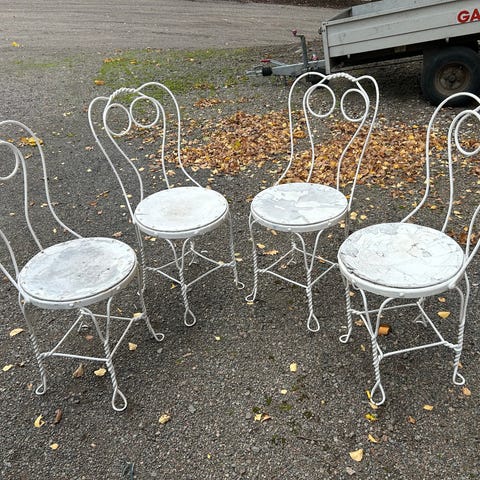 Består av to stoler og ett rundt bord 70cm diameter og 75cm høyde.