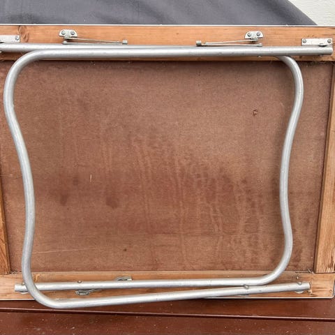 Gammelt sammenleggbart campingbord. 60cm x 80 cm, 60 cm høyt. Hentes på Ridabu.