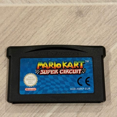 Mario Kart Super Circuit til Gameboy Advance(GBA, GBA SP og DS lite) selges. Kun spill, selges uten cover og uten manual. Label er litt slitt, se bilder. Spillet er originalt og er pent brukt. Stand følger med. Konsoll følger ikke med😉