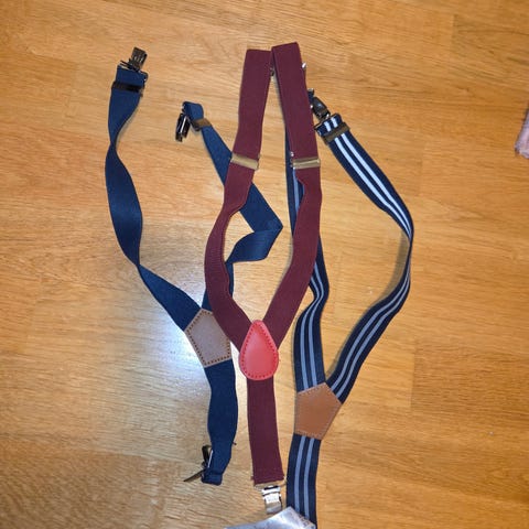 Bukseseler striper marineblå m skinn og «gull» detaljer