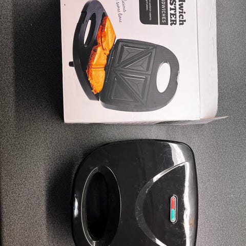 Cuisine toastjern med utskiftbare plater for vafler og smørbrød. 3 forskjellige stekeplater der kun ett av dem har sett nevneverdig bruk.