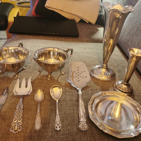 Jeg har kjøpt inn masse sølvplett mest for en del prosjekter jeg har men også for smykkelaging. Det hender jeg kommer over noen skatter på brukt handlere og hadde et håp om å få samlet inn til komplette sett i de diverse mønstrene men det er det mye jobb bak.