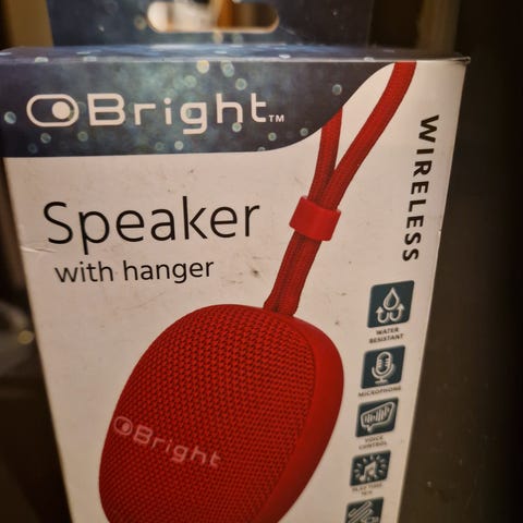 Uåpnet rød vanntett høytaler.