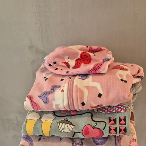 To pent brukte pysjamaser, fra H&M og Name it. Begge med enhjøringer/My little Pony.