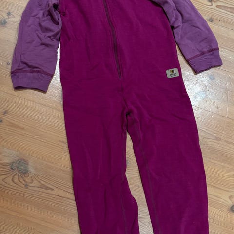 Pent brukt ulldress/heldress av 100% merinoull, str. 110. "Prinsesseull" fra Janus. Lekedress/mellomlag/pysjamas. Ingen flekker eller hull. Denne er litt tykkere enn typ undertøy, mulig ullfrotté. Disse er dyre i innkjøp.