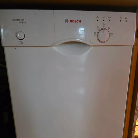 Solid oppvaskmaskin som har gått trofast i mange år. Vannskyller på bildet har ramlet ned i det siste da foring er slitt, sikkert en lett greie å reparere for en som er handy eller har en lignende maskin.