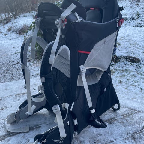Med innebygd solskjerm som kan brukes ved sterk sol.
