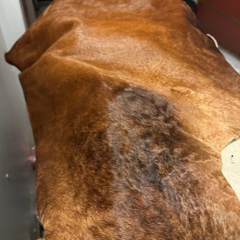 Pent brukt, normal naturlig patina for ekte dyreskinn. Ingen skader eller lukt.