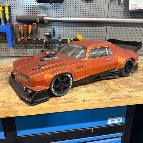 Arrma typhon tlr med castle esc og motor motoren funker ikke så du må kjøpe ny men alt annet funker strøkent. En ny motor koster rundt 1500 tror jeg den har jeg har tatt bra vare på den vasket den etter hver bruk det er ingen rundet skruer dette er en kjempe rc som er veldig bra på offroad, hopp, osv