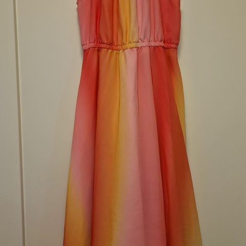 Burgunder kjole med gullmedaljer og tyllskjørt. Gull på tyllskjørte er borte noen plasser, se bilde