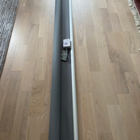 Pakken er åpnet, men gardinen ble aldri montert. Skruer og fester medfølger. Som ny.