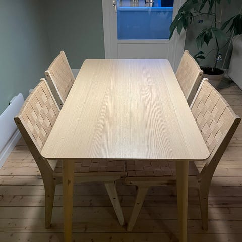 Selger et Lisabo spisebord fra IKEA med sittebenk og 2 stoler.
