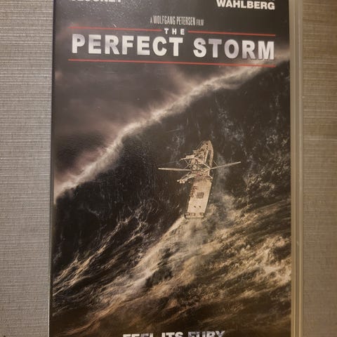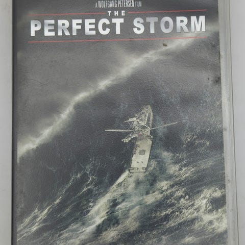 The Perfect Storm VHS film featuring actors George Clooney and Mark Wahlberg. The VHS tape contains the full movie and comes in its original case with cover art