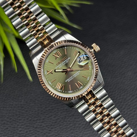 Selger en elegant Seiko mod 41mm herre klokke med automatisk urverk. Klokken har en dyp blå skive. Kassen og lenken er laget i rustfritt stål og har en riflet bezel som gir klokken et tidløst og eksklusivt uttrykk. Klokken er ikke brukt og er perfekt til både hverdagsbruk og mer formelle anledninger. Boks til klokken følger med.