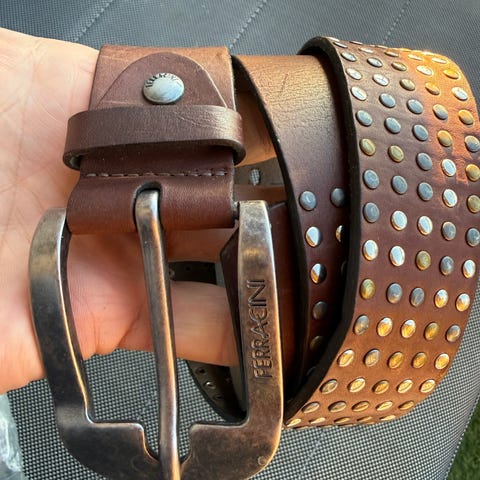 Beltet har en unik hesteskospenne og en hvit lærreim