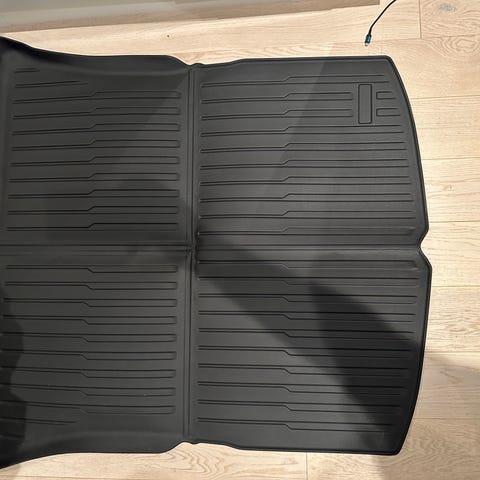 Tesla Model Y bagasjeromsmatte i svart materiale. Beskytter bagasjerommet mot skitt og slitasje. Tilpasset for å passe nøyaktig i Tesla Model Y år 21-24.