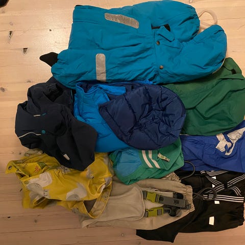 Pent brukt regntøy fra refleks. Regnbukse og regnjakke selges samlet. Ser helt fin ut og ingen hull, men lett slitasje i skrittet.
