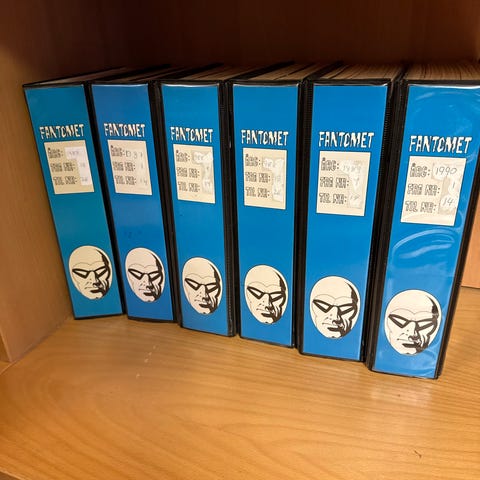 Har en skoeske full av eldre fantomet blader. Esken består av 35 blad.