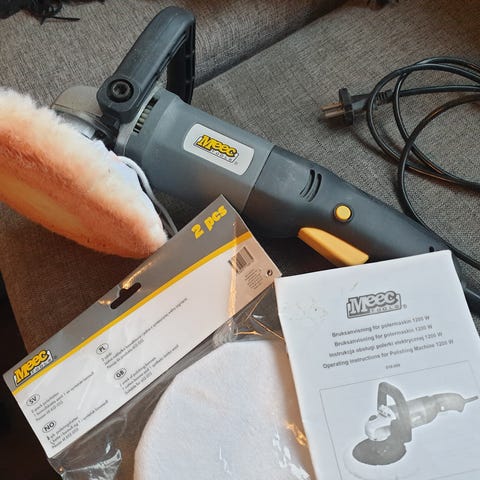 Poleringsmaskin på ledning med Ø180mm pute, godt grep og justerbar hastighet (0-3000rpm). 1200W.