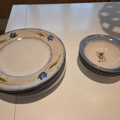 De er 2 dype tallerkner i 22 cm, ser som nye ut men har litt usynnlig nag på kanten