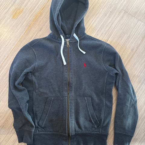 Veldig fin og nesten ny grå Ralph Lauren hettejakke med zip, nesten ikke brukt. Dette passer størrelse extra small til small. Selger fordi den er for liten for meg.