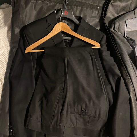 Se på bildene for størrelse, første bilde er av den aktuelle dressen og de påfølgende er størrelse på jakke, skjorte og bukse, i den rekkefølgen 👍