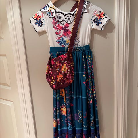 Utkledningskjole fra H&M i str 110/116. Knapt brukt, men fått et par tråder som er dratt i. Syns ikke i bruk.