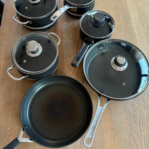 • 🔸 Alt samlet i en utskåret treholder med håndtak, så settet enkelt kan flyttes