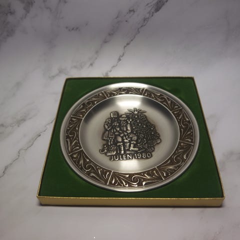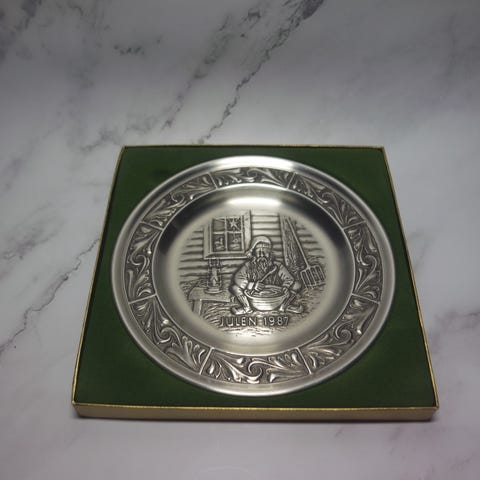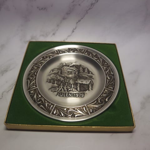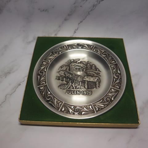 Vintage juleplatter i tinn av Astri Holthe.