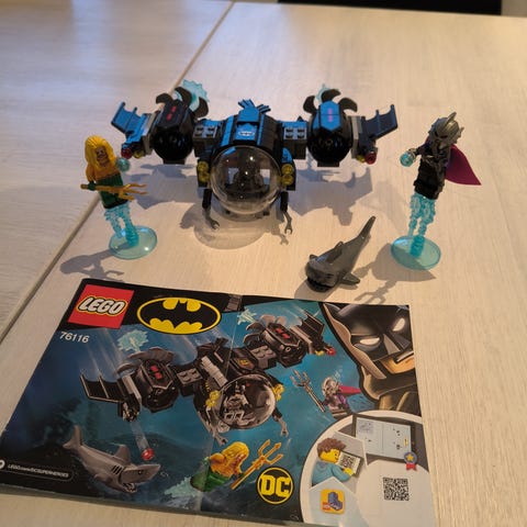 LEGO DC Batman leketøyssett med flere minifigurer og tilbehør. Settet inkluderer Batman-figurer, kjøretøy og en base som forestiller Batcave.