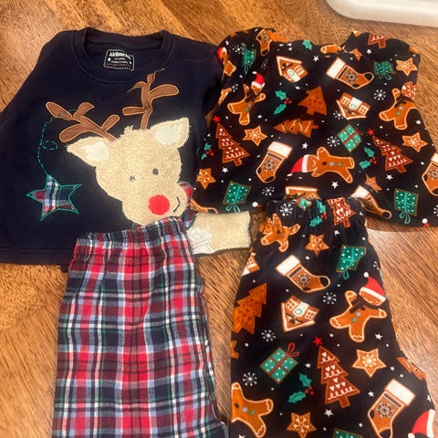 - Mørk blå jakke fra H&M i str 158. Bukse fra KappAhl i str 158 i nesten lik farge, men litt over mot sort.
