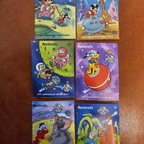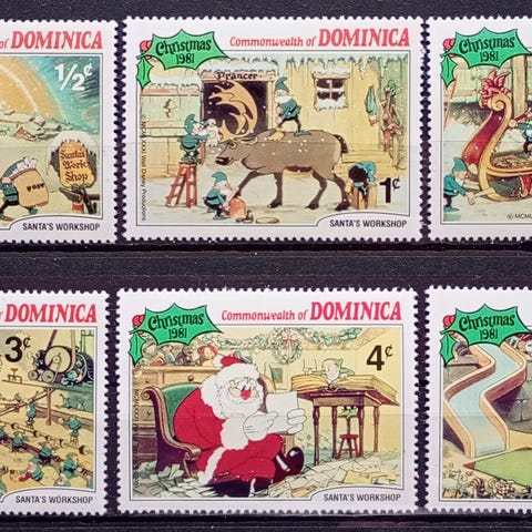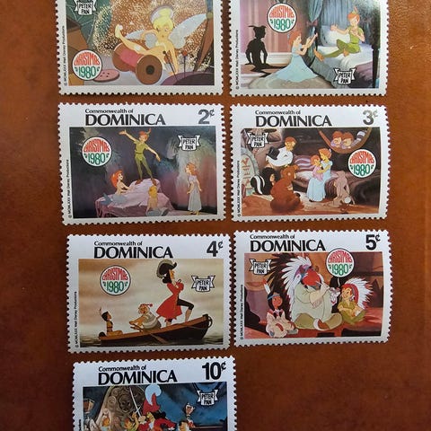 Disney frimerker fra Dominica og Antigua fra 1980 tallet. Det er motiver fra forskjellige Disney filmer og figurer. - de kan ofte være samleobjekter. Selges samlet.