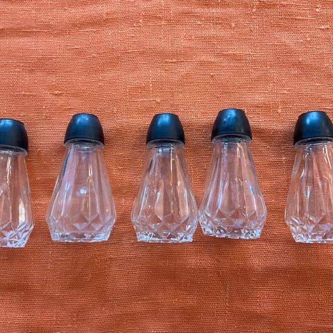 Salt og pepperbøsse, 2 av hver. Porselen med gull. Merke «Germany».