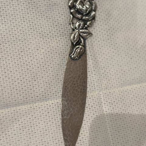Selges flaskeåpner i mønster flatt rose med graveringer, norsk sølv 830s stemplet.