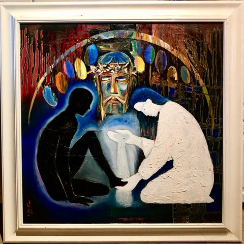 Unikt maleri i akryl. Blanding av pop-art og andre metoder