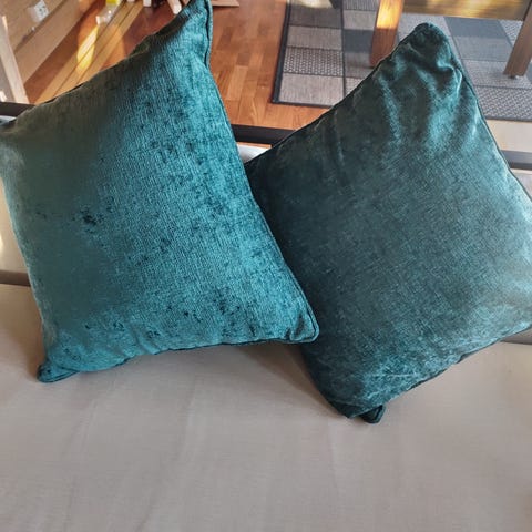 Selger to solide grå sofaputer som ikke passer inn i hjemmet vårt. Pent brukt. Stort sett kun vært til pynt.