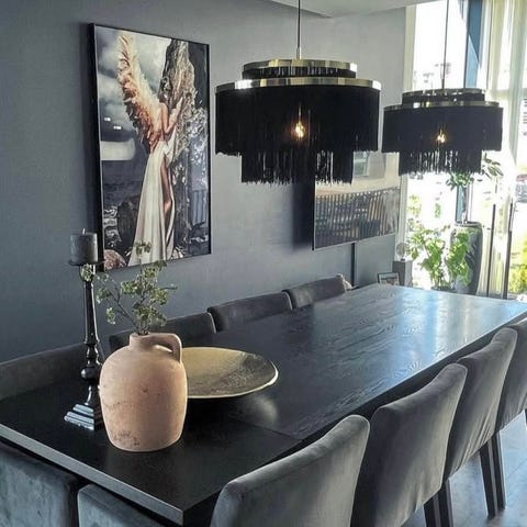 Vernon taklampe fra Stone Field er en elegant og moderne lampe med røykfarget metallramme og syv dekorative glasskuler. Det stilrene designet gjør den perfekt over spisebordet, på kjøkkenet eller i stuen, der den fungerer både som belysning og designelement.