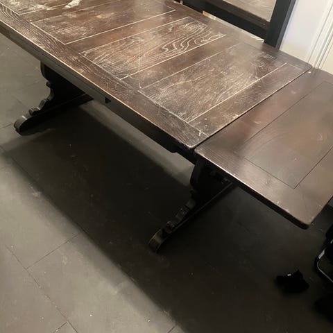 Praktisk utvidbart spisebord. Bordplaten kan dobles. Må hentes.