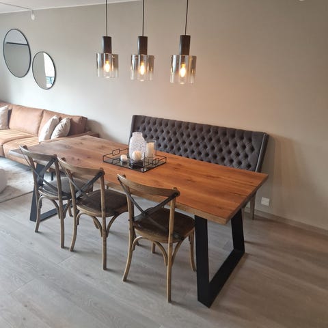 Pent brukt spisebord med stoler selges da vi skal flytte til mindre leilighet.
