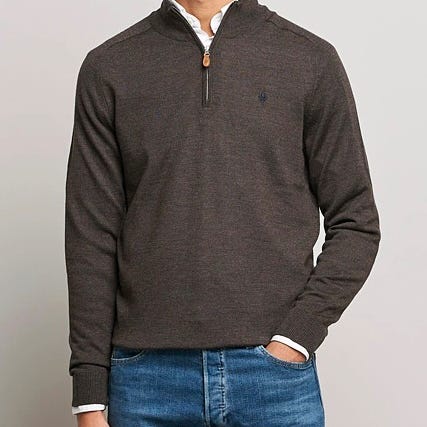 Morris half zip genser i Merino Ull selges.