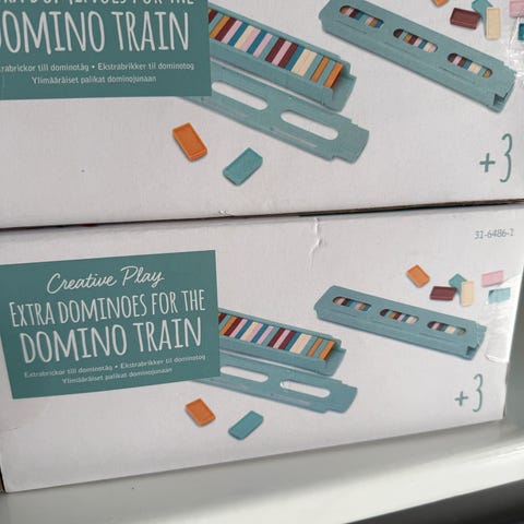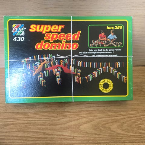 Domino Express Racing og Crazy Factory med 300 brikker samlet og ulike konstruksjonsdeler og dominoeffekter. Settet inkluderer fargerike plastkomponenter og mekaniske elementer for å bygge kjøringsbaner og dominoeffekter. Egnet for barn og familier som ønsker å sette sammen og se dominoer falle i en kjede.