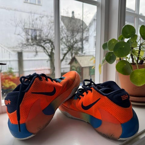 Pent brukte Nike Hyperdunk 2016 basketballsko str. 42,5 i fargen University Red. Sønnen min brukte dem en halv sesong i 2016; og etter det har de ligget i skapet. Noen bruksmerker som vist på bildene, men veldig pene sko. Røykfritt og dyrefritt. Kan hentes i Trondheim sentrum eller sendes.