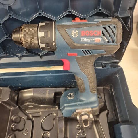 Bosch GSR 12V-15 FC drill med 12V Li-Ion batteri. Leveres i koffert med ladeutstyr. Egnet for presisjonsarbeid og allsidig bruk innen bore- og skrueoppgaver.