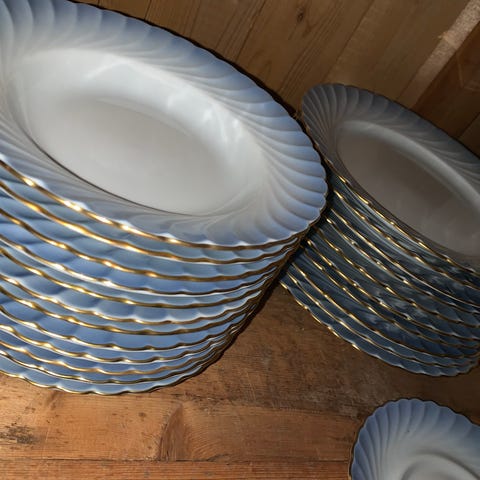 Ønsker å kjøpe middags tallerkner i bogstad hvit med gull kant. Str 24 cm