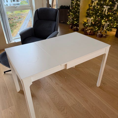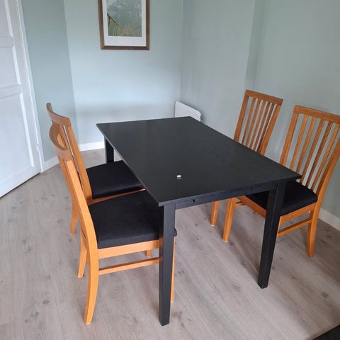 Selger pent nesten ubrukt kjøkkenbord og to stoler / krakker.
