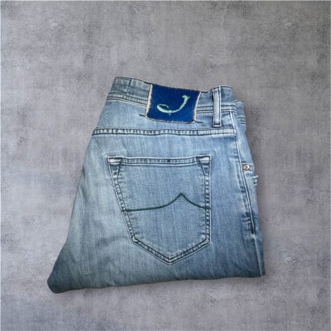 Selger en pent brukt Jacob Cohen jeans, style 622 (tilsvarer Nick), størrelse 34. Håndlaget i Italia med eksklusive detaljer og signaturfinish. Lys blå vask med moderne og allsidig uttrykk – passer perfekt til både hverdags og mer oppdressede antrekk. Buksa er i svært god stand og kun brukt ved få anledninger. Nypris ca. 5000 kr.