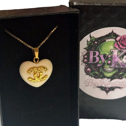 Flott firkantet Chanel logo pyntet gull- tone ramme med Glittrende Blingz på hoved logoen. Chanel halskjede! Henger på et kvalitets 18k gullbelagt spiral halskjede. Annhenget er re-design av et vintage Chanel anheng, stemplet Chanel på baksiden, fire små monogram logoer rundt på front i rammen, samt vaffel mønster. Kjedet er nytt og ubrukt!