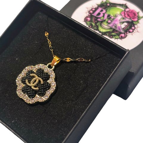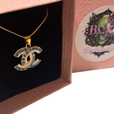Chanel Halskjede, Firkantet CC-logo innrammet med blingz og Gulldouble