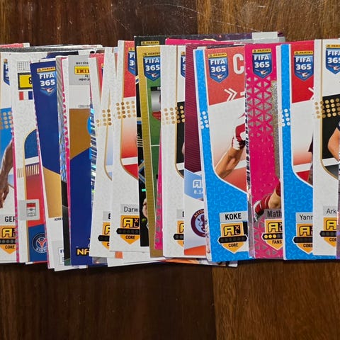 Diverse Fans Favourite forballkort fra serien Panini FIFA 365 du kan kjøpe individuelle kort eller hele pakken for 150. Grå kort koster 10 kroner, rød koster 20kr og blå koster 30kr.
